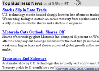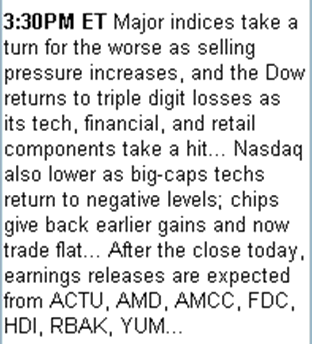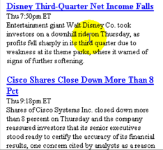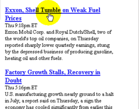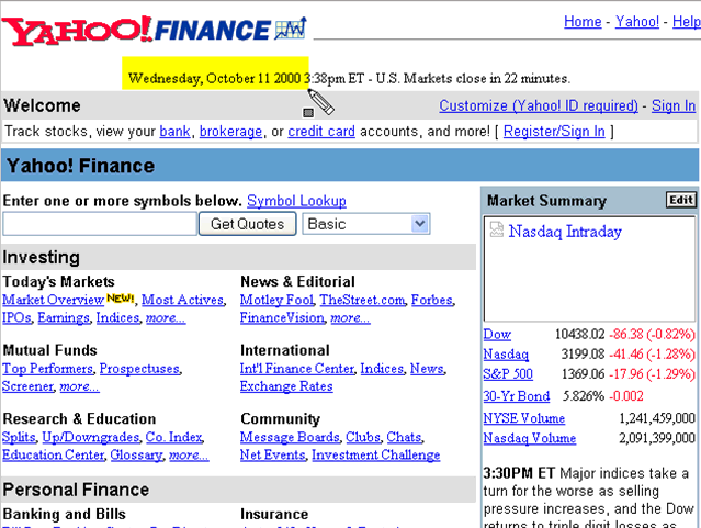 Por ejemplo, si regresamos al período del año 2000 al año 2002 usted podrá observar las noticias que había en varios sitios financieros de Internet como en la imagen 2.2, correspondiente al sitio de finanzas de Yahoo! , en ella puede observar lo que estaba sucediendo el día 11 de octubre del año 2000.