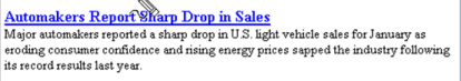El 2 de febrero del 2001 en el mismo sitio de Finanzas de Yahoo! puede observar como el sector de automóviles se estaba viendo afectado, segun la imagen 2.6