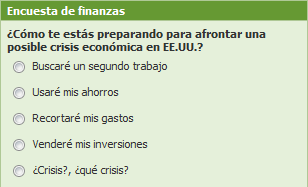 Volviendo a la encuesta del sitio de MSN Finanzas que le mostré inicialmente, puede verla nuevamente en la imagen 3.8