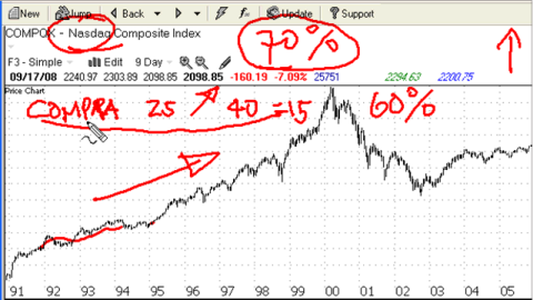 Si usted compra acciones que pertenecen al índice NASDAQ tiene un 70% de probabilidad que el precio de la acción va a subir. Es sencillo ganar dinero en la bolsa de valores cuando el mercado va hacia arriba.