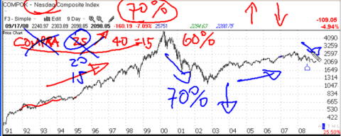 Recuerde que hay períodos en el que el mercado va hacia arriba y también hay períodos en el que va hacia abajo. Cuando el mercado va hacia arriba, quiere decir que alrededor del 70% de las acciones que pertenecen al NASDAQ van subiendo. Vea la imagen 3.1