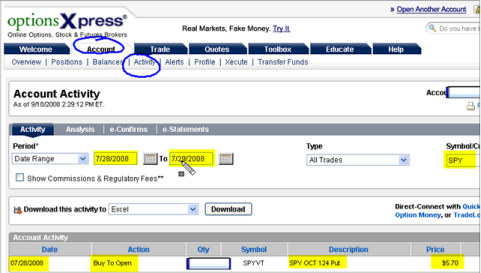 En la imagen 3.5 puede ver un reporte de actividades de las transacciones que he realizado entre el 28 y el 29 de julio de cualquier transacción con el símbolo del título de inversión SPY.
