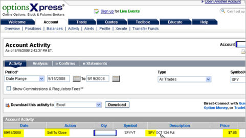 Usted podrá notar el cierre de la transacción, el 16 de septiembre. Los contratos que había comprado a USD$5.70 se apreciaron aún con la caída del precio de este título en la bolsa de valores.
