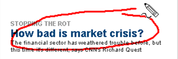 En la imagen 1.2 se puede observar un encabezado que se mostraba en otro sitio web. El titular dice: «Qué tan mala es la crisis del mercado?»