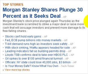 La imagen 1.4 corresponde al sitio de Yahoo! Finance del Jueves 18 de Septiembre de 2008. En ella también puede ver más noticias sobre la caída de los precios de las acciones de grandes compañías financieras.